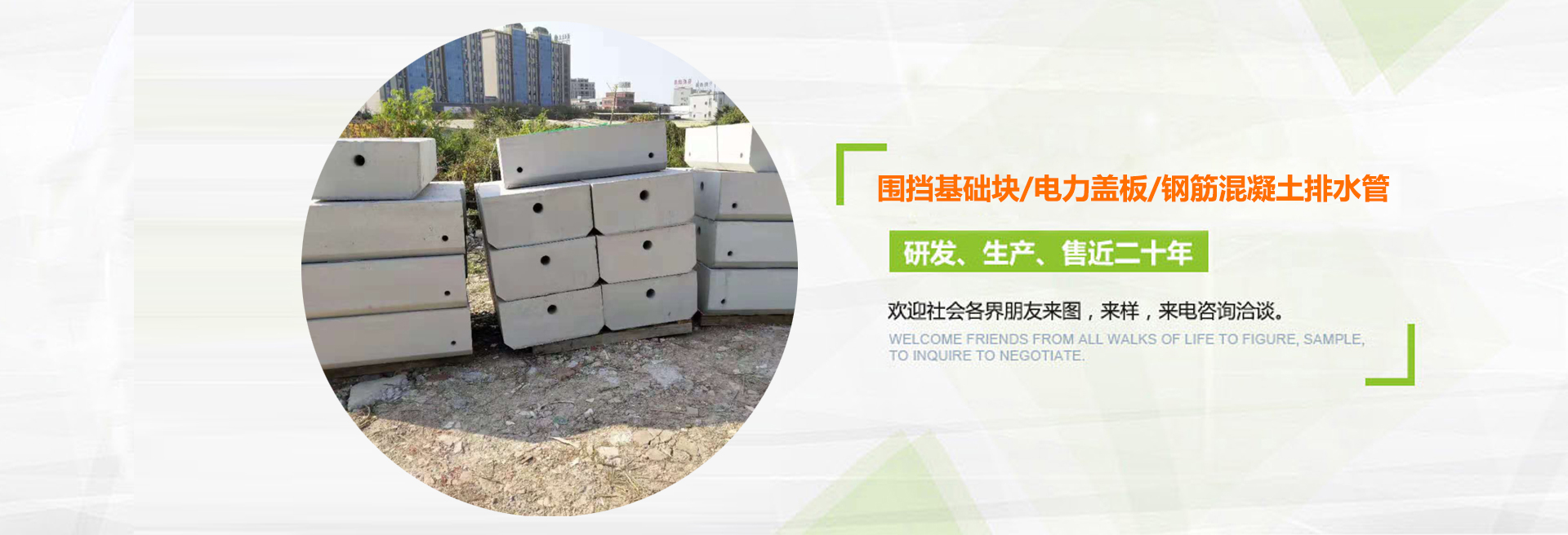 深圳富華環保建筑材料有限公司(簡稱富華環保建筑材料)是一家專業研發生產與銷售水泥預制品的公司,從2001年開始至今,主要生產的產品有:圍檔基礎塊、環保透水磚、河道護坡磚、停車場植草磚、電纜溝蓋板、預制井筒井座、立道牙、平道牙、鋼筋混凝土排水管、頂管、排煙道管、隔離敦、河道仿木欄桿等水泥預制構件, 可針對每一個客戶的不同條件和要求,設計與生產各種水泥預制構件。